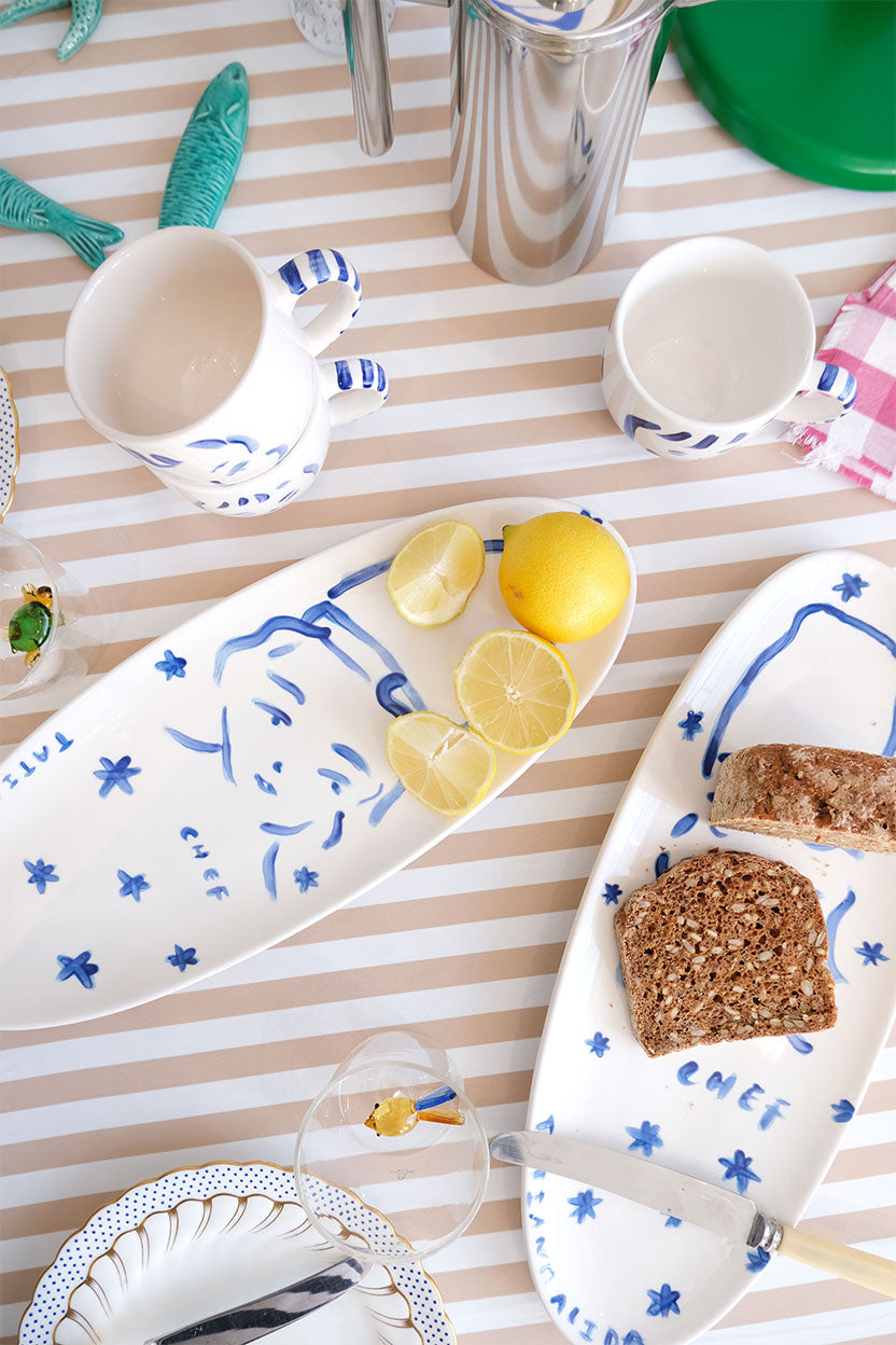 Driven by her creative flair and entrepreneurial spirit, Tatiana is continually expanding her world beyond signature artworks and ceramics. Her evolving product range includes jewellery, clothing, textiles and soft furnishings, and playful everyday accessories like tote bags and tea towels.