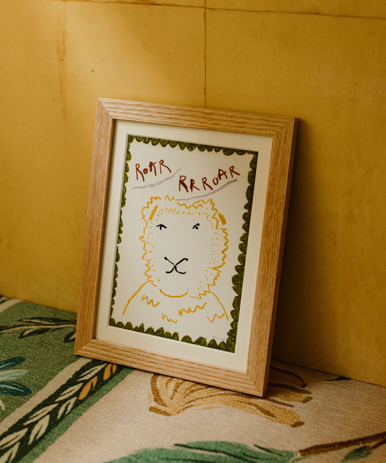 This charming illustration by Tatiana Alida captures the majestic lion in a playful and light-hearted style that both children and adults will enjoy. Little ones will love pointing to the animals and practicing their sounds, making it as educational as it is decorative.
