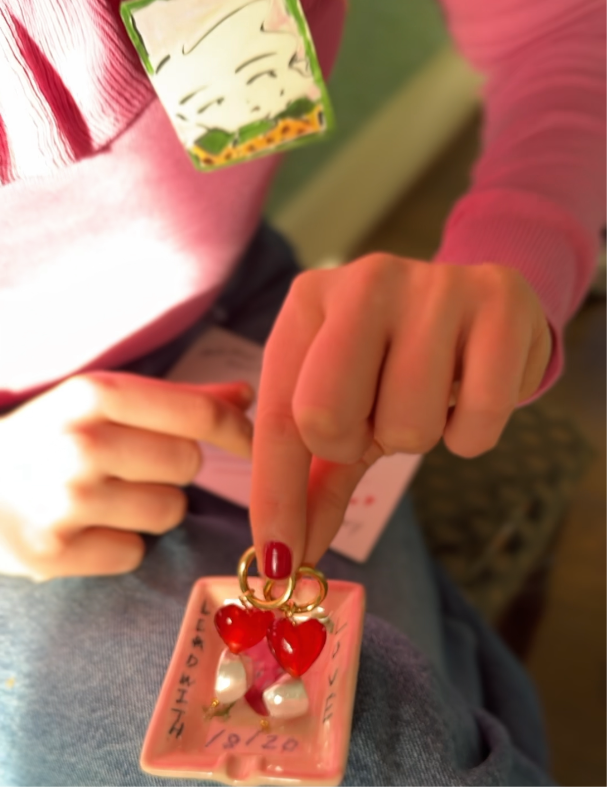 Lightweight gold-tone hoops hold vibrant red heart charms, finished with organic pearl accents each slightly unique, making every pair subtly one of a kind. Designed to add a touch of charm and personality to everyday dressing, they work just as beautifully with casual knits as they do with evening looks.