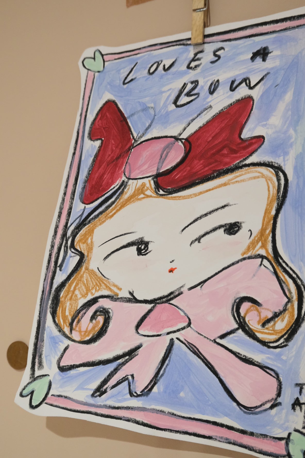 'Loves A Bow' A4 Original Artwork by Tatiana Alida.
