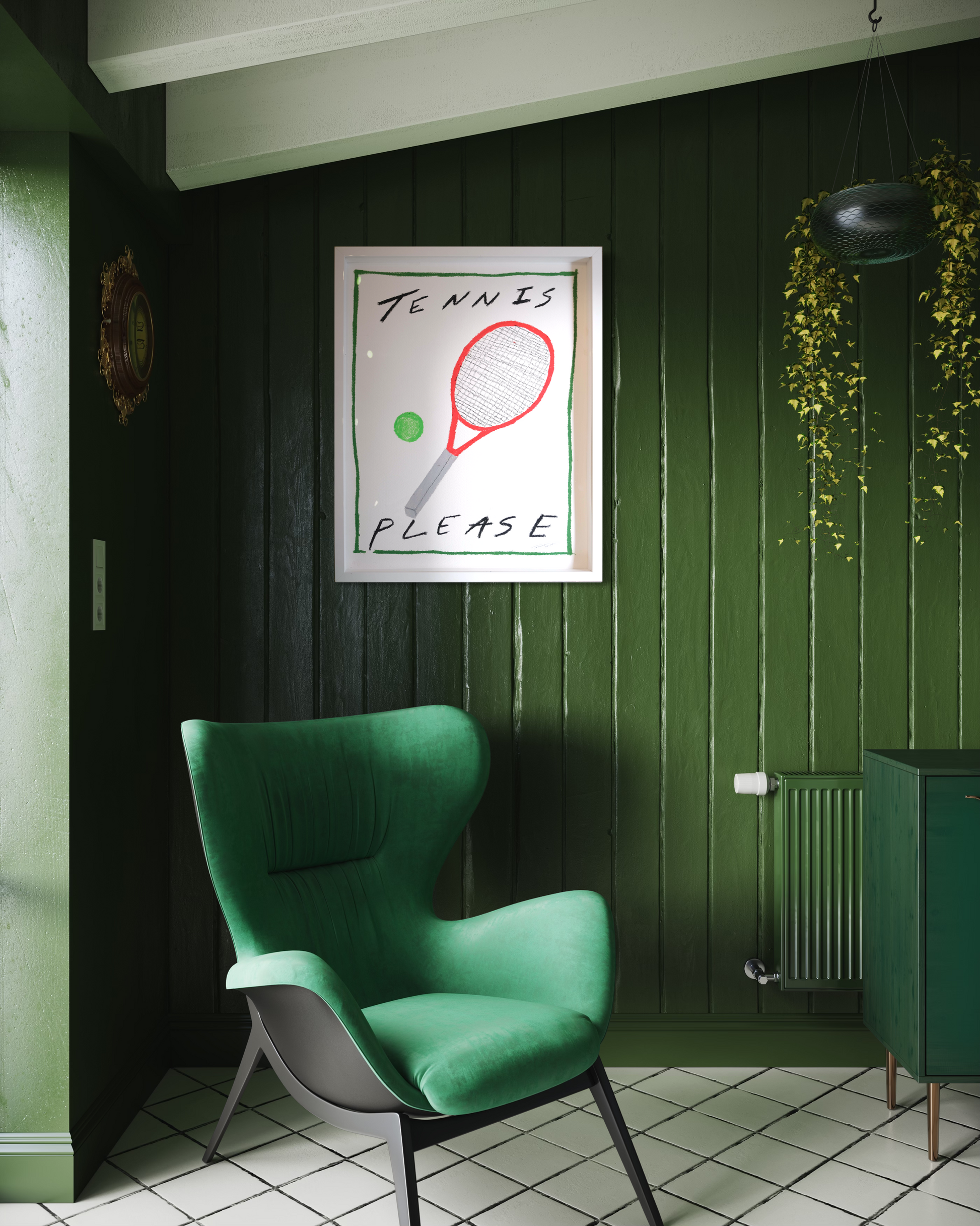 Sporty, sunny, and full of summer energy — “Tennis Please” brings a playful spin to courtside culture. Whether you're a Wimbledon devotee or just love a cheeky rally, this print adds bounce to any space.