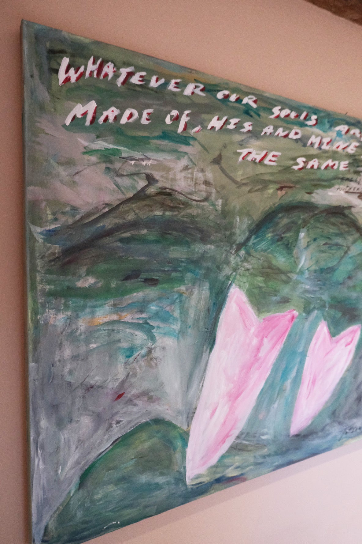 Inspired by the Emily Brontë line from Wuthering Heights, this piece centres on connection the sense of recognising yourself in someone else. Two forms sit within layered greens and muted tones inspired buy the dramatic Yorkshire landscape where a lot of the book and film are set.